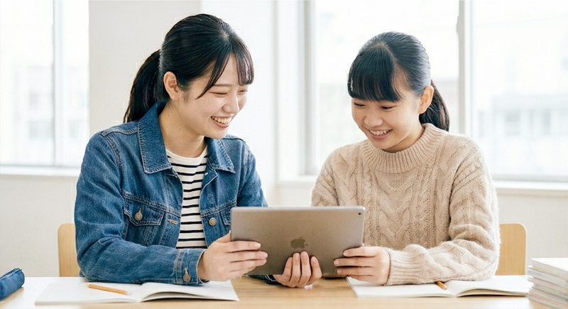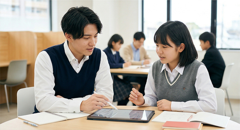 人より教えるのがうまい厳選のAI・デジタル教材を複数組み合わせ、先生ガチャの無い高品質な学習を提供。追加料金なしの定額で全教科学べます。普段は英数、定期テスト前は国理社もといったように柔軟に対応可能です。受験対策のみならず、学校の教科書や学校独自のプリント教材・副教科も含めた定期テスト・内申点対策を行います。